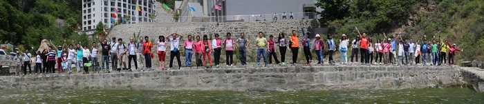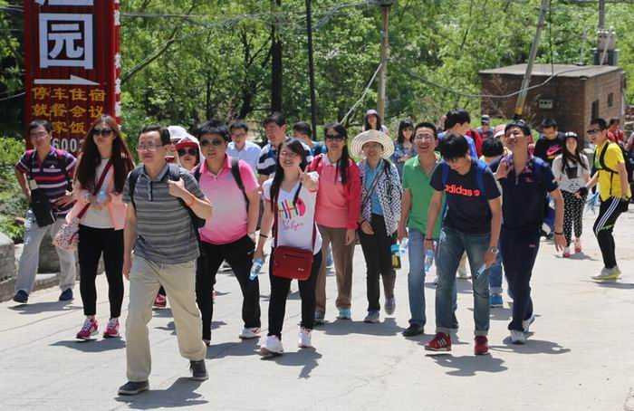 根據(jù)行程安排,活動第一天大家攀爬了五岳寨“大圈”。 5月份的五岳寨氣候涼爽,景色怡人,在游覽美景的同時,集團還舉辦了小組和個人登山比賽,挑戰(zhàn)自我。大家不分彼此,團結(jié)協(xié)作,都以征服這座海拔2000米的高峰為目標,盡情的攀登,還時時不忘互幫互助,濃濃的團隊精神深深感染了每一個人。經(jīng)過近3個小時的攀爬和激烈爭奪,最終杜保凱、李凱星和常樂摘得登山比賽個人獎前三名的桂冠;任曉磊組、張媛媛組、杜靜組三個小組分獲登山比賽團體獎前三名。成功攀登到山頂?shù)娜藗?,歡聚在大自然的懷抱中,禁不住歡呼雀躍,盡情的品味著“一覽眾山小”的樂趣。