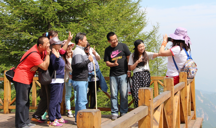 5月16日早上7點鐘,大家在導(dǎo)游的陪同下從公司準時出發(fā)趕赴五岳寨風(fēng)景區(qū)。五岳寨旅游區(qū)位于河北省靈壽縣西北部山區(qū),南距省會石家莊110公里,北與佛教圣地五臺山隔山相望,總面積120平方公里,因五座山峰并列聳立,且有五岳之特點而得名。五岳寨山峰危兀并立、高低不一、形態(tài)各異,泉、溪、潭、瀑到處可見,氣候涼爽宜人,俗有“伏天還把被子蓋”的說法。聽完導(dǎo)游的介紹,大家更是充滿了期待。兩個多小時的路程轉(zhuǎn)瞬即逝,抵達景區(qū)后大家集體合影留念。