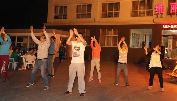 下山稍事休息后,大家迎來了期待已久的篝火燒烤晚會。穆總首先為獲獎個人頒獎,對本次活動給予了肯定,對大家在登山過程中表現(xiàn)出來的不服輸精神表示贊揚,指出所有成功登頂?shù)膯T工都是勝利者,都是嘉聯(lián)集團企業(yè)文化的代言人和踐行者。李漢章、馮長鎖、侯旭營等領(lǐng)導(dǎo)分別給獲獎團隊進行了頒獎。接著,晚會以一曲極具動感活力的舞蹈——《抓錢舞》開場,詼諧幽默的歌曲,夸張搞笑的動作,引得大家捧腹大笑。篝火點燃后,熊熊大火照亮了夜空,象征了嘉聯(lián)集團事業(yè)蒸蒸日上。大家圍坐在篝火旁,一邊欣賞節(jié)目,一邊品嘗各類美食,舉杯言歡。全員參與的集體篝火舞蹈,將活動氣氛推向了高潮,引爆了大家的熱情,大家環(huán)繞在一起,圍繞著熊熊燃燒的篝火,伴隨著節(jié)奏明快的音樂,盡情的跳躍,釋放自己。晚會在一首接一首的K歌表演中圓滿落下帷幕。